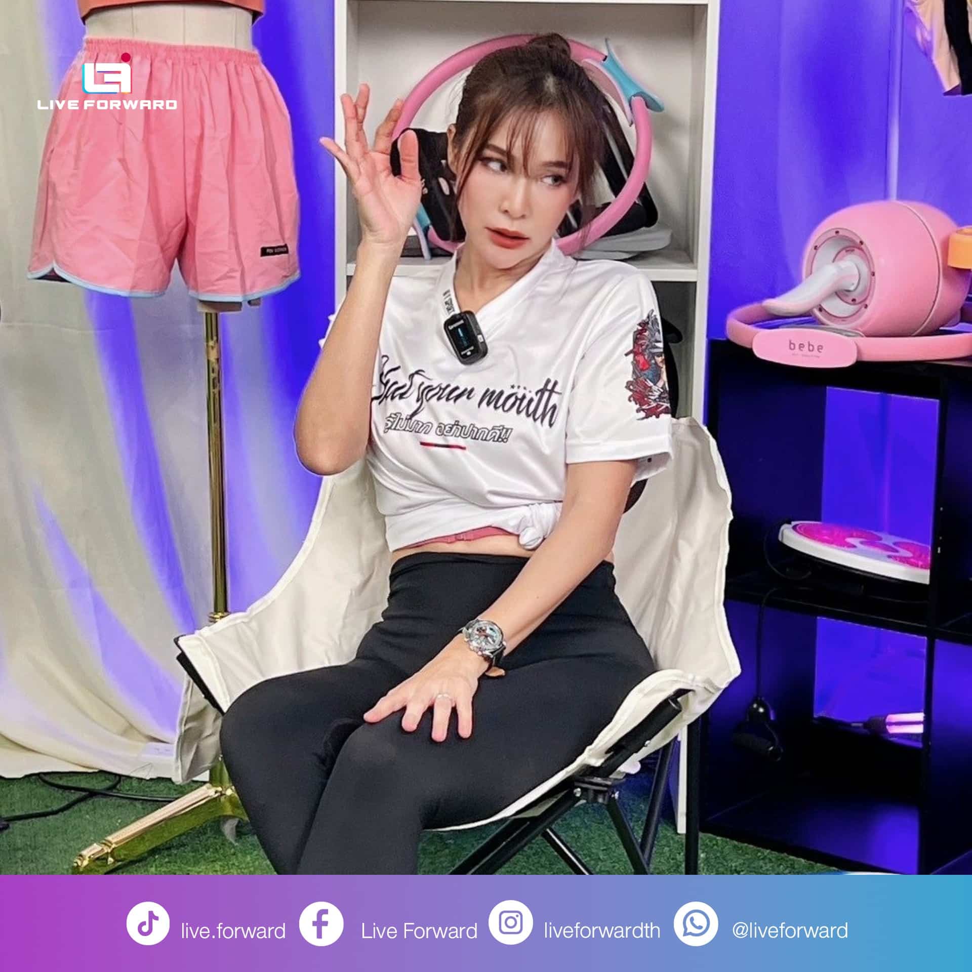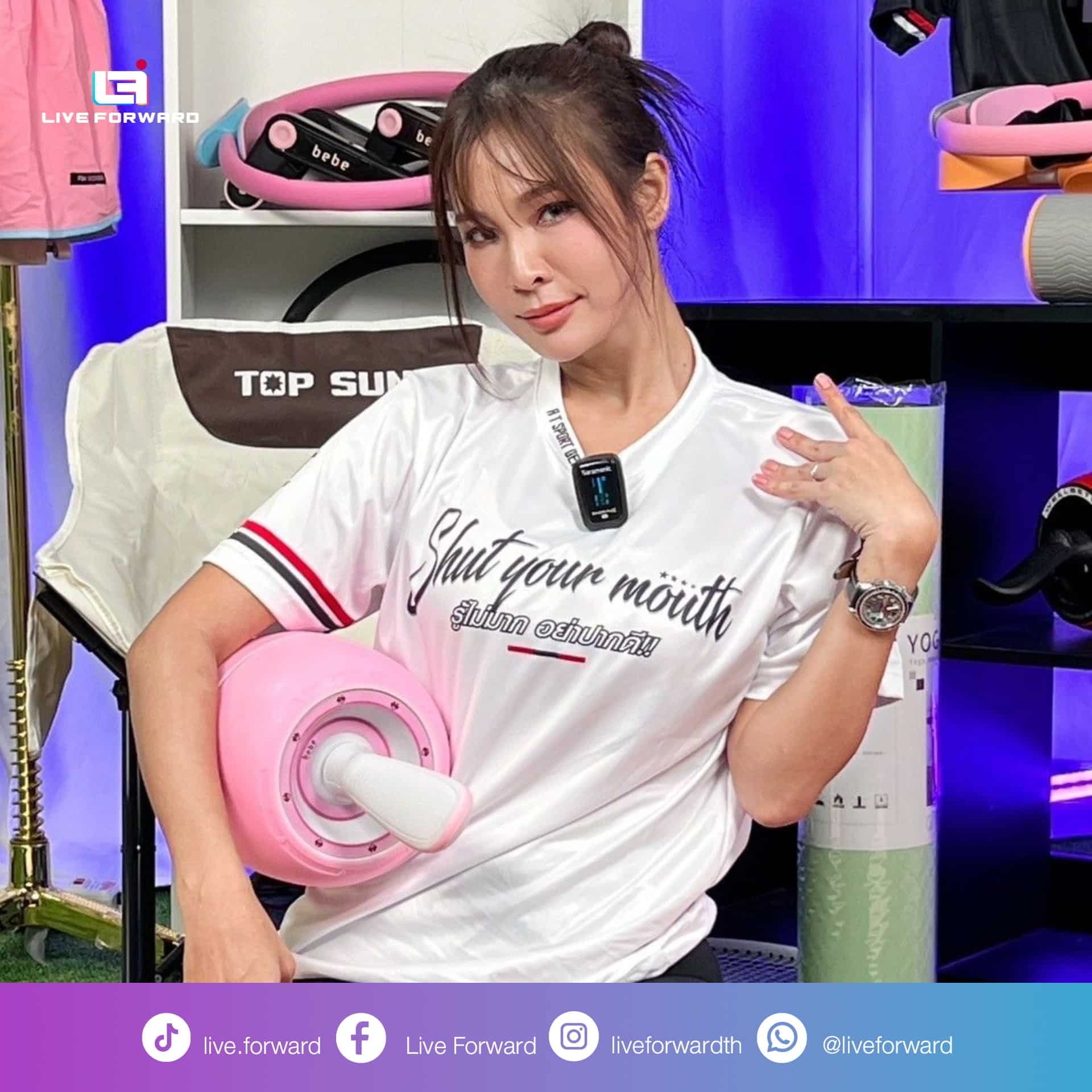 Live Forward ขอขอบพระคุณอินฟลูเอนเซอร์ และทีมงานมืออาชีพจาก TikTok Thailand ที่วันนี้ได้นำสินค้าสุดปัง ตั้งแต่ชุดกีฬาสุดแซ่บจากแบรนด์ Fit – Paradise, ดัมเบลยกน้ำหนักจาก MarketTops, เครื่องออกกำลังกายแบบสั่น จากแบรนด์ Fit-Zone และสินค้าอีก ๆ อีกมากมาย มาจัดโปรราคาดี ๆ ในไลฟ์วันนี้ จนช่องคอมเมนต์แทบแตก !